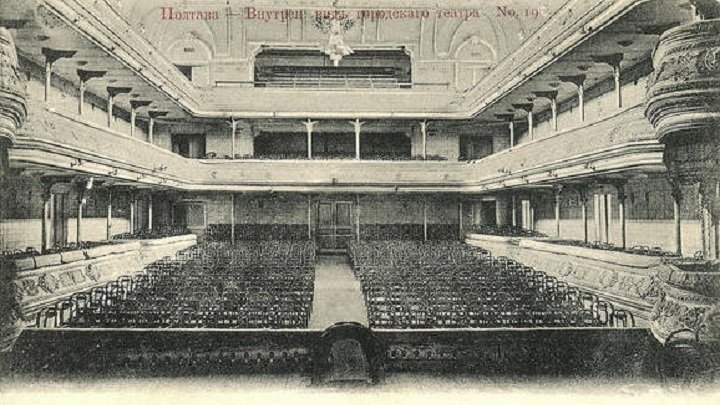 Будинок для першого полтавського театру був споруджений у 1810 р. майже на околиці міста – там, де тепер Полтавська аграрна академія межує з територією школи № 7 імені Т. Г. Шевченка.