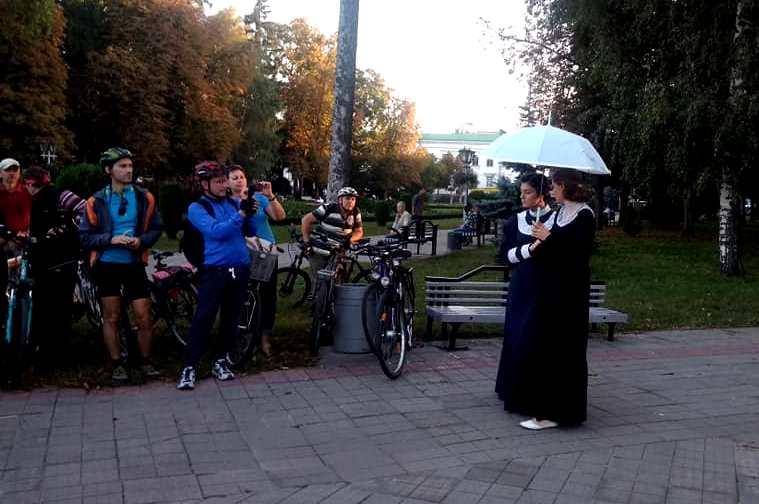 Полтава очима Короленка20.09.18, 11:05 Напередодні Дня міста Полтави працівники Полтавського літературно-меморіального музею В.Г.Короленка презентували екскурсію «Полтава очима Короленка». Учасниками живої екскурсії стало понад 70 полтавських велосипедистів. Екскурсійний маршрут був прокладений між двома помешканнями Короленка, - будинком Петра Старицького (нині будівля СБУ) та будинком на Мало-Садовій, де пройшли останні 18 років життя письменника. На цьому маршруті було створено 7 локацій, де учасники екскурсії могли почути цікаву інформацію про об’єкти, пов’язані з життям та діяльністю Володимира Галактіоновича та познайомитися з відомими особистостями кінця ХІХ та початку ХХ століття. Так перед глядачами з’являлися доньки В.Г.Короленка Софія та Наталка, перший нарком освіти та культури Анатолій Луначарський у супроводі начальника ЧК Іванова. Поблизу колишньої Великої хоральної синагоги йшла мова про єврейські погроми та справу Бейліса (розповідали про це Володимир Галактіонович та Євдокія Семенівна Короленко). У березовому сквері глядачі зустрілися з Костянтином Ляховичем, Наталкою Ляхович та їхньою донечкою Софійкою. Надзвичайно емоційними були сцени у Петровському парку, де була показана сцена з автобіографічної повісті Івана Буніна «Життя Арсеньєва» та на вул. Шевченка, 13 під час зустрічі з Ольгою Волкенштейн. Закінчилася мандрівка на подвір’ї музею В.Г.Короленка, де під час чаювання учасники ділилися враженнями про побачене та почуте. Емоції вирували. Загалом втілювало у життя живу екскурсію 15 акторів-аматорів. Тексти для них були написані за щоденниками і листами В.Г.Короленка, спогадами його рідних та друзів. Автор ідеї та сценарію – Людмила Вітенко.
