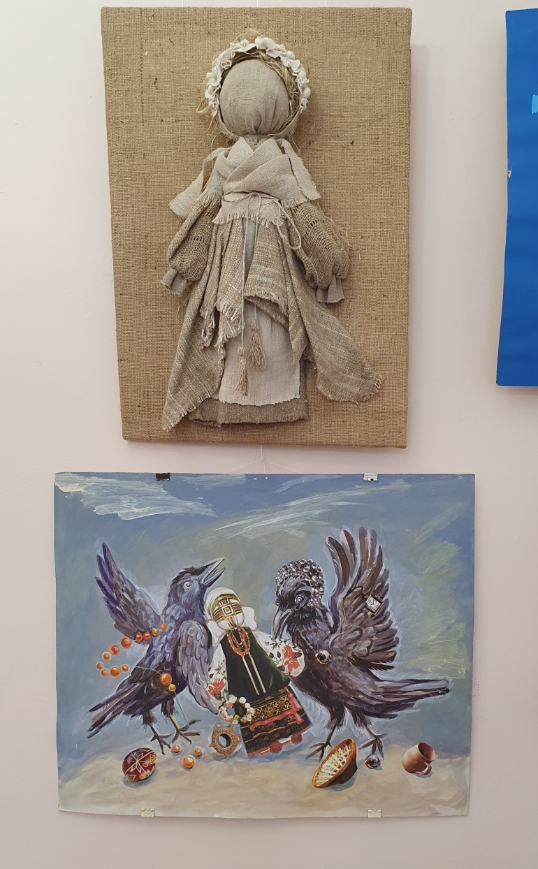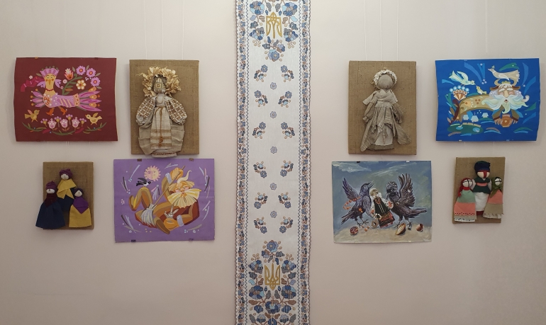 На виставці представлені роботи Євгена Пілюгіна (голови Полтавського осередку Національної спілки майстрів народного мистецтва України та Національної спілки художників України, заслуженого майстра народної творчості України, лауреата премій імені В.Г. Короленка та І.П. Котляревського); Наталії Свиридюк (заслуженої членкині Національної спілки майстрів народного мистецтва України, лауреата премій імені В.Г. Короленка та Самійла Величка) та її доньки (магістрантки історичного факультету ПНПУ ім. В.Г. Короленка, членкині Національної спілки майстрів народного мистецтва України) Олександри Свиридюк; Олени Коршунової (майстра художньої вишивки, членкині Національної спілки майстрів народного мистецтва України, дипломанта премії імені Панаса Мирного). Роботи виконані в різних техніках народного мистецтва: це і лялька-мотанка, і вишивка та витинанка, і живопис. Деякі з них не лише репрезентують українську культуру, а й мають символічний і навіть пророчий підтекст.