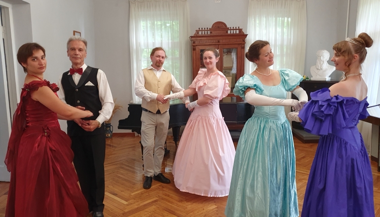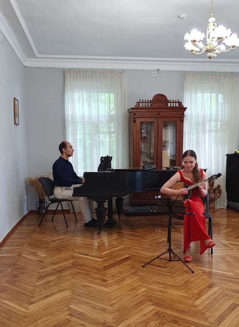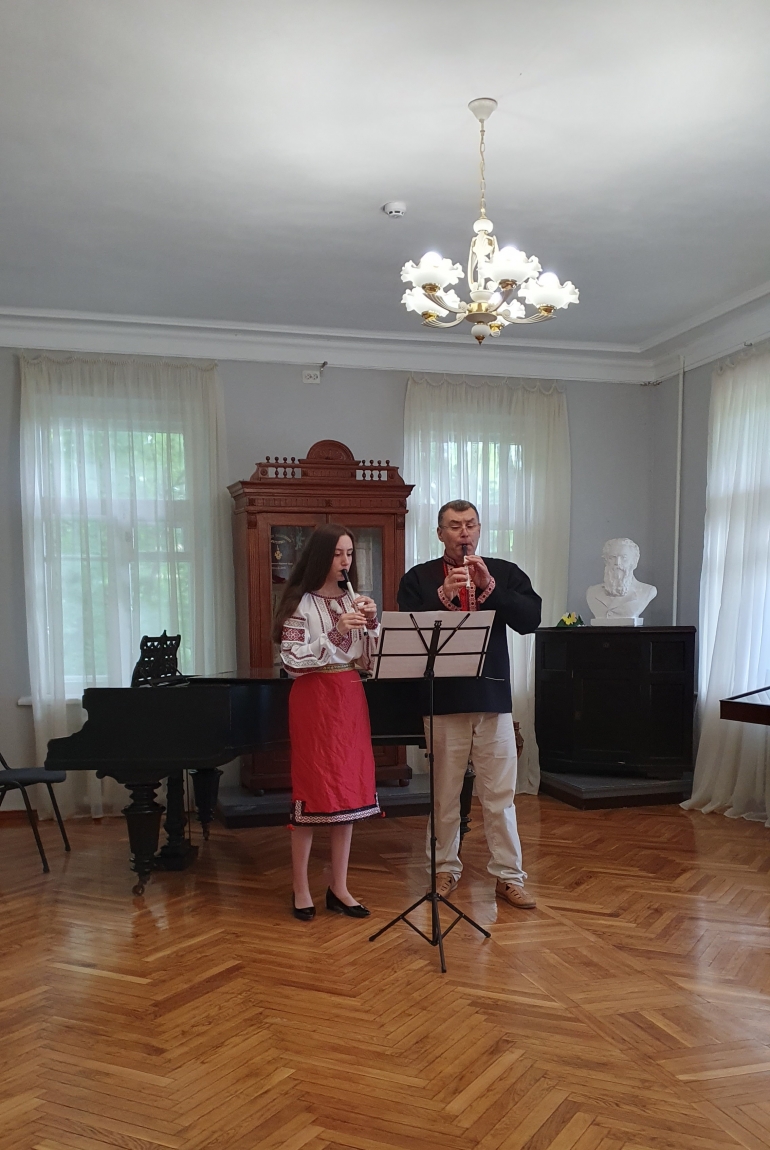 На гостей виставки очікував також невеличкий концерт. Члени Полтавського клубу шанувальників старовинного танцю «Естель» виконали австрійський танок початку ХХ ст. «Лендлер». У виконанні музикантів – Олега Курінного (викладача Полтавського фахового коледжу мистецтв ім. М.В. Лисенка, сопілка) і Софія Курінної (учениці студії при Полтавському фаховому коледжі мистецтв ім. М.В. Лисенка, сопілка), Богдана Стегнія (піаніста, концертмейстера, автора мистецьких проєктів) та Ксеніі Шумної (солістки Миколаївської філармонії, клас домри) – у поєднанні класичних і народних інструментів прозвучали авторські, народні та сучасні мелодії. Затишна атмосфера Короленківської садиби з традиційним чаюванням викликала у майстрів і гостей приємні спогади про мирне минуле і сподівання та плани на майбутнє. Запрошуємо полтавців та гостей міста відвідати виставку, яка розміщується в літературному будинку садиби Короленка.